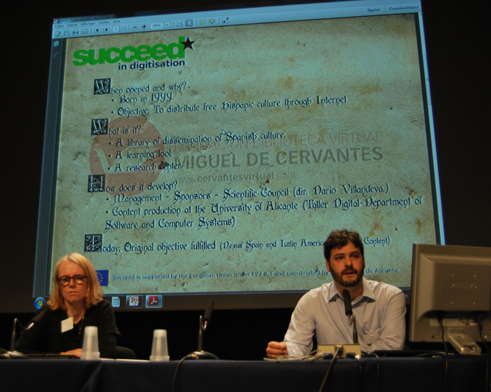 Then, Oskarbi Zubiarrain, from the Biblioteca Virtual Miguel de Cervantes, took the floor to present their evaluation of NCSR Geometric Correction: Page Curl tool and the Abbyy FR Engine v10.