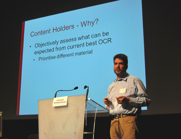 Finally, Wolfgang Stille, from University Library of Darmstadt, presented the evaluation of the Fraunhofer tools Newspapers Segmenter, Korrektor and Document Deskewer.